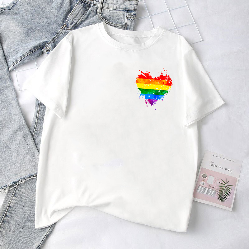 Damska koszulka małe serce PRIDE LGBT biała