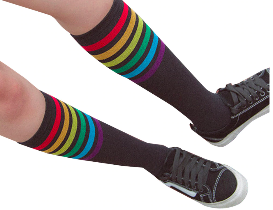 Podkolanówki to must have każdej stylizacji zarówno na co dzień dla kobiet do spódnic czy sukienki jak i dla panów do krótkich, czy też długich spodni. Jest to też nieodłączny atrybut podczas parad równości, gdzie można zaprezentować kolejną rzecz w kolorach PRIDE!