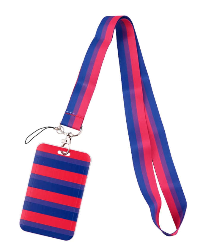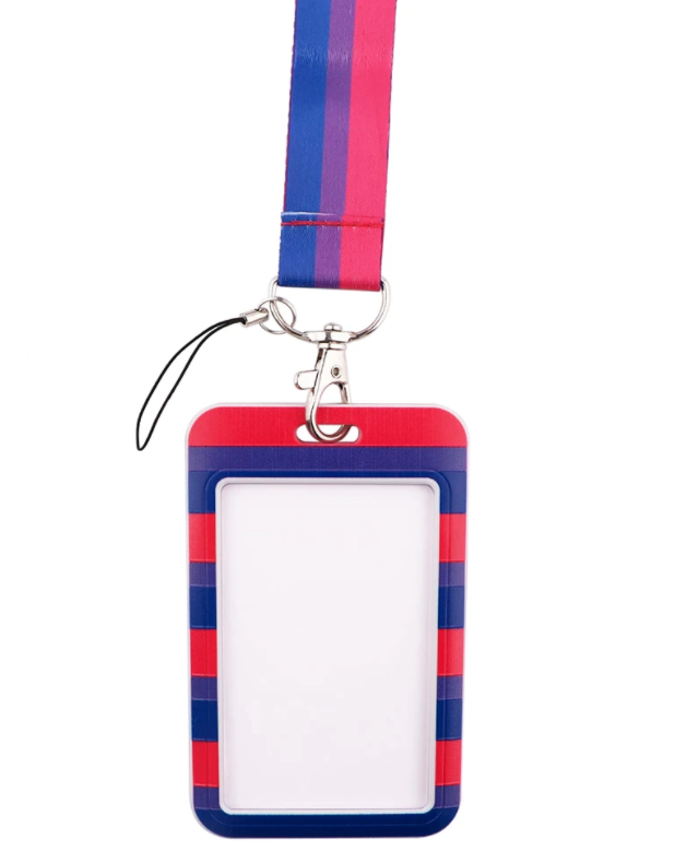 Smycz z zawieszką biseksualna flaga PRIDE LGBT z etui na kartę/identyfikator